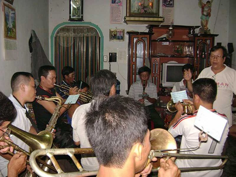 Những “nghệ sĩ nông dân” Đồng Nai trong một buổi tập thổi kèn đồng.